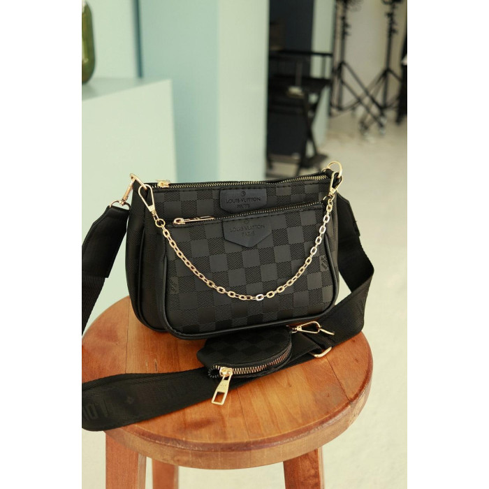 Женская сумка 3 в 1 Louis Vuitton, клатч черный Луи Витон 3 в 1