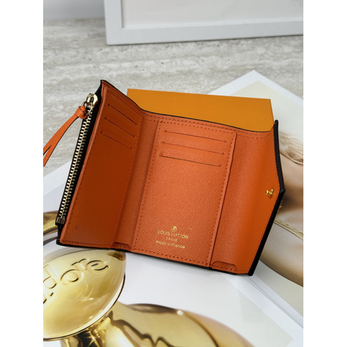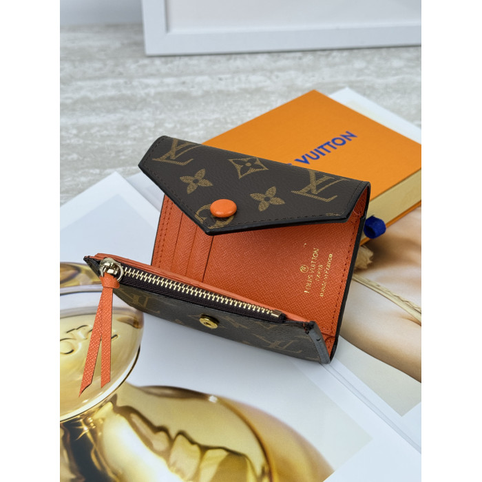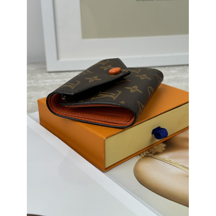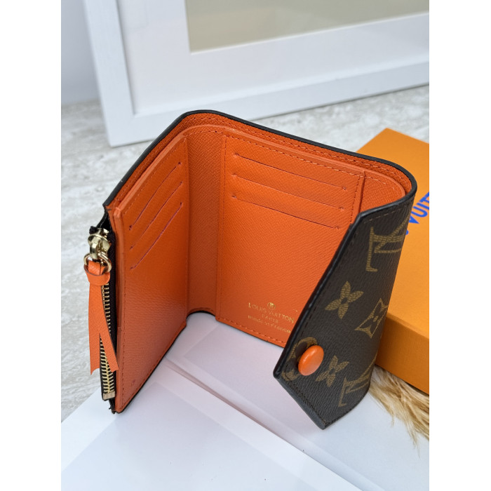 Женский кошелек Louis Vuitton коричневый + оранжевый конверт мини Луи Виттон