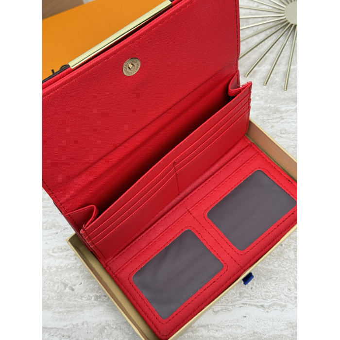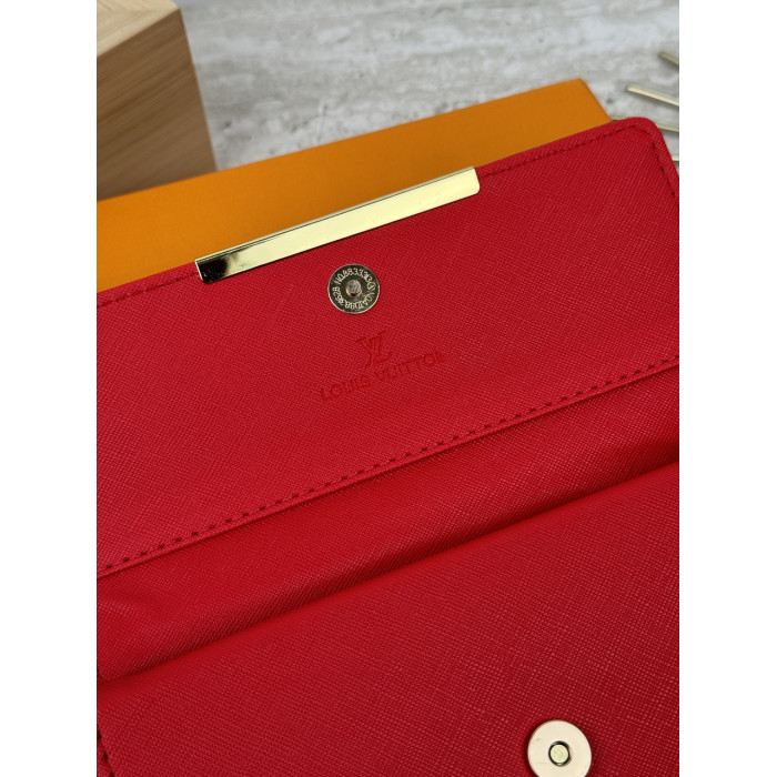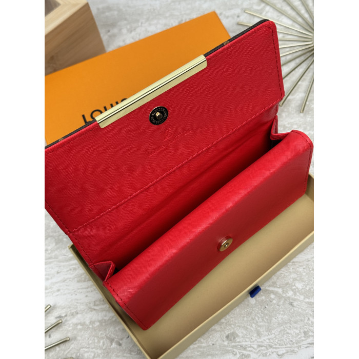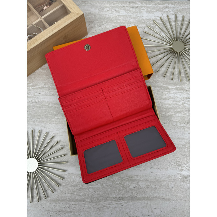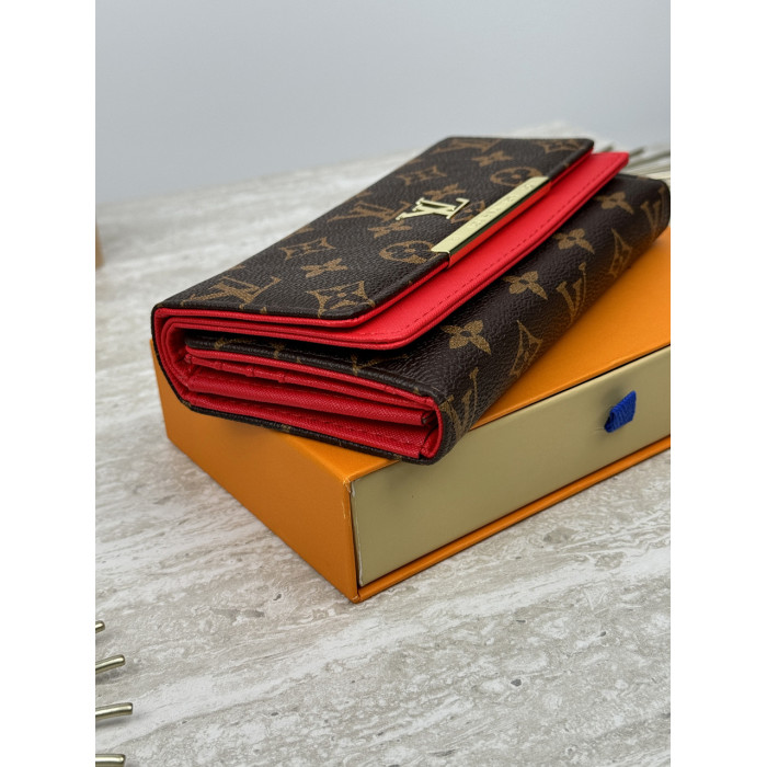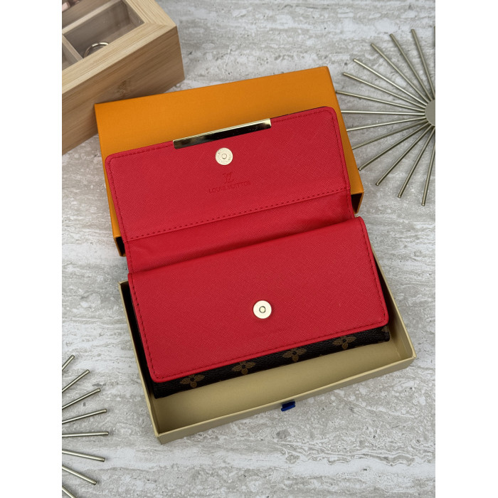 Женский кошелек Louis Vuitton коричневый + красный большой двойной Луи Виттон