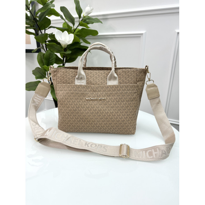 Сумка женская Майкл Корс шопер бежевый Michael Kors шоппер через плечо