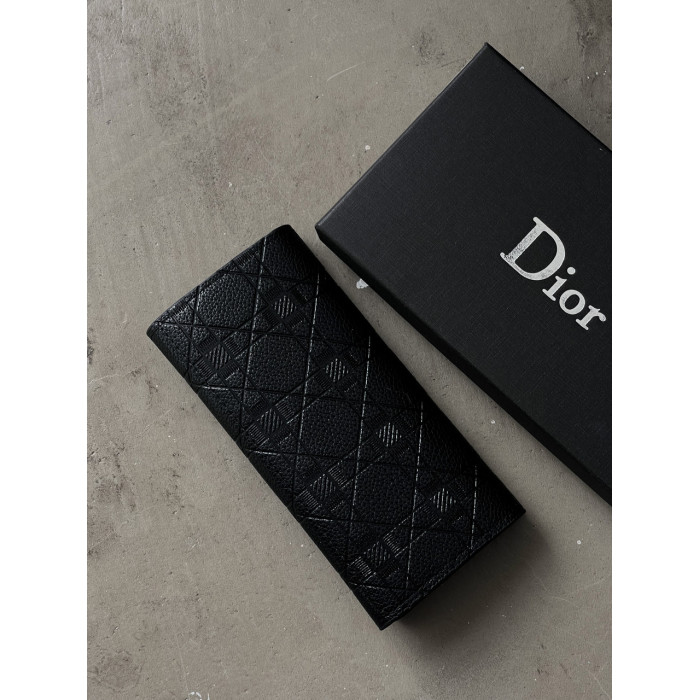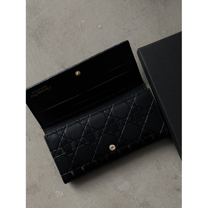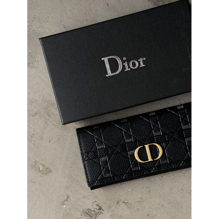 Женский кошелек Christian Dior черный стеганый двойной Диор