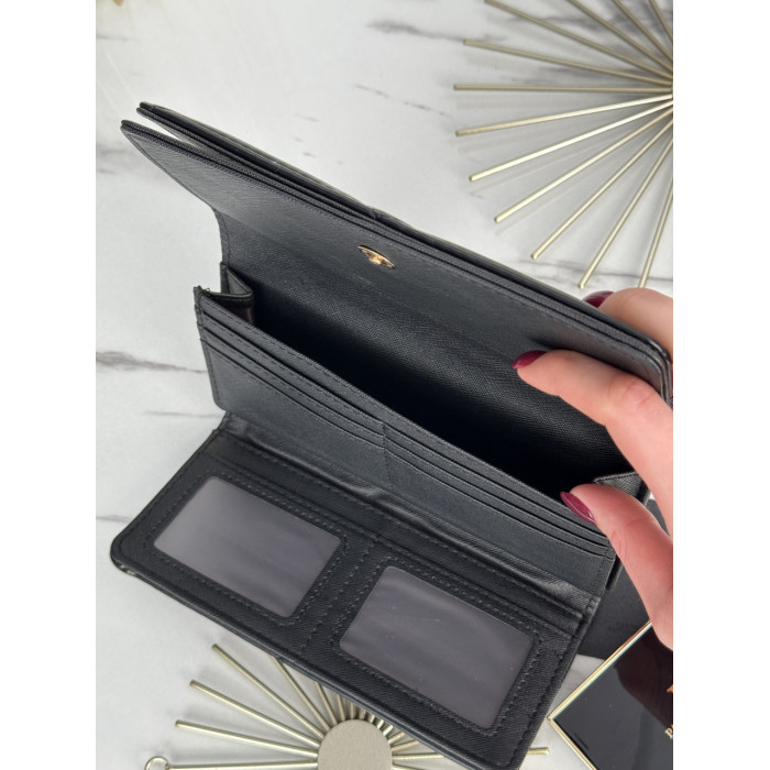 Внутри два отделения для крупных купюр. Одно отдельное закрытое отделение для купюр, по бокам 8 слотов для ID и кредитных карточек.