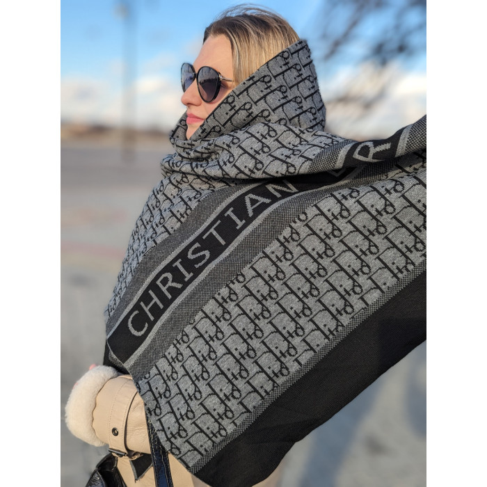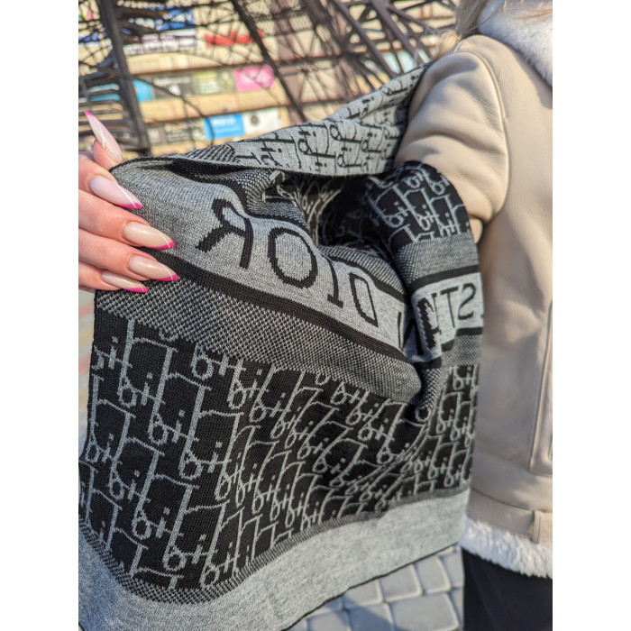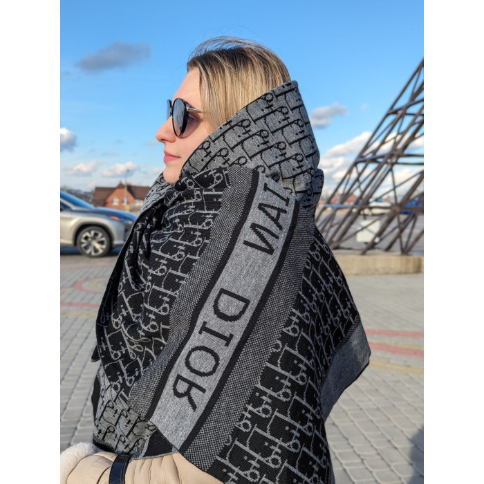 Самый популярный палантин,шарф от Christian Dior ЖЕНСКИЙ ШАРФ ДИОР ― с монограммами в стильном сером цвете, двухсторонний.