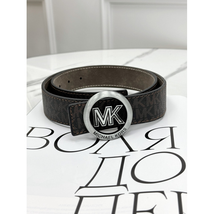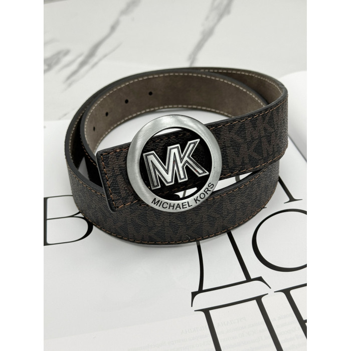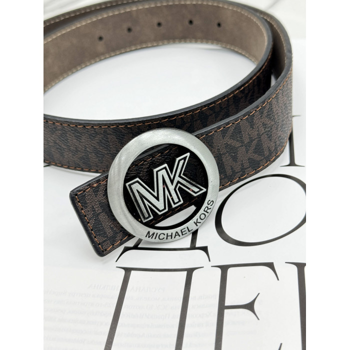 Ремень унисекс пояс Michael Kors коричневый серебро матовый Мишель Корс