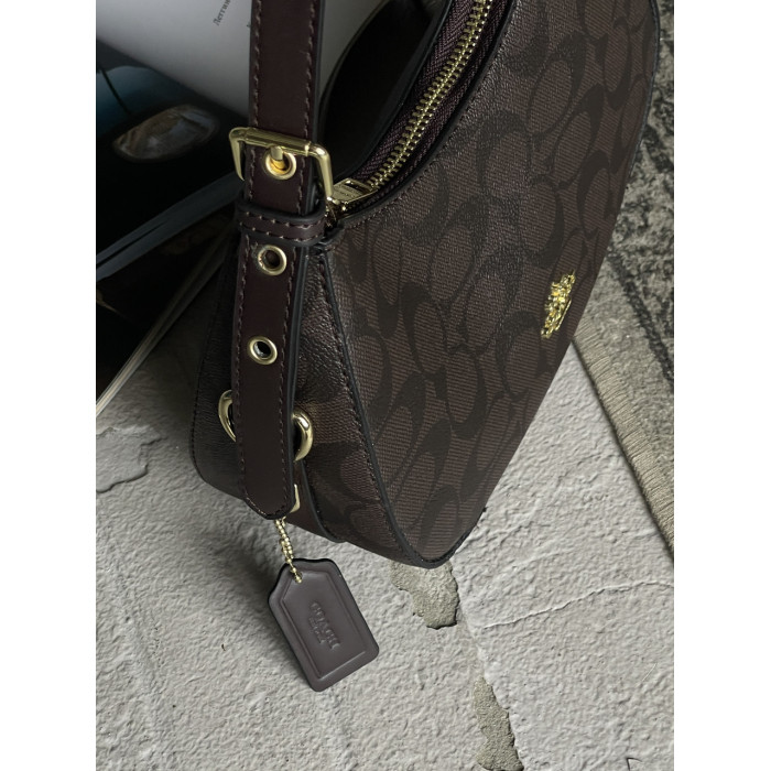 Женская сумка багет Coach Kleo коричневый через плече Коуч