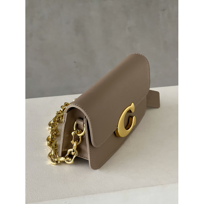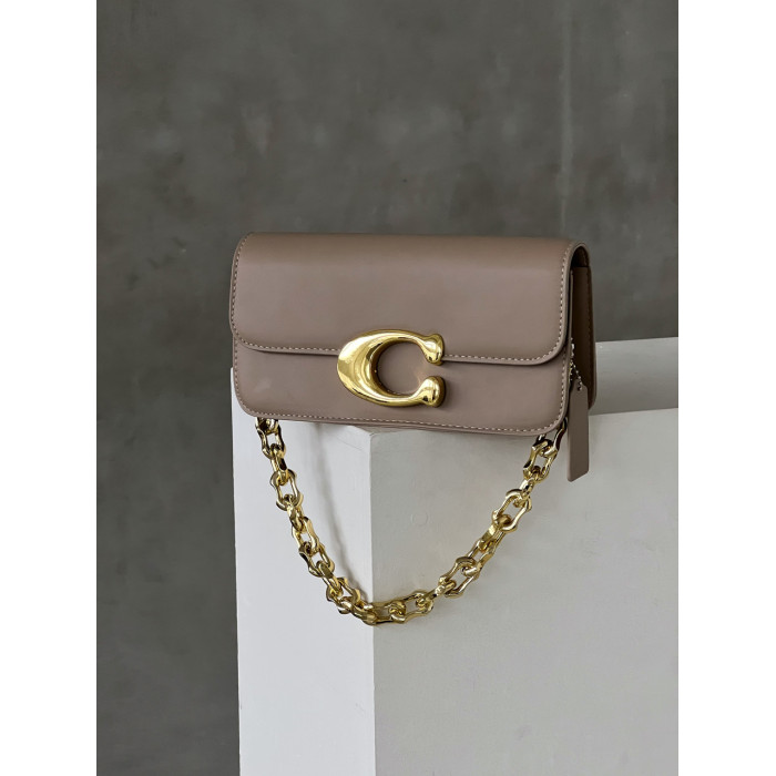 Женская сумка клатч Coach Idol Bag бежевый на цепочке Коуч