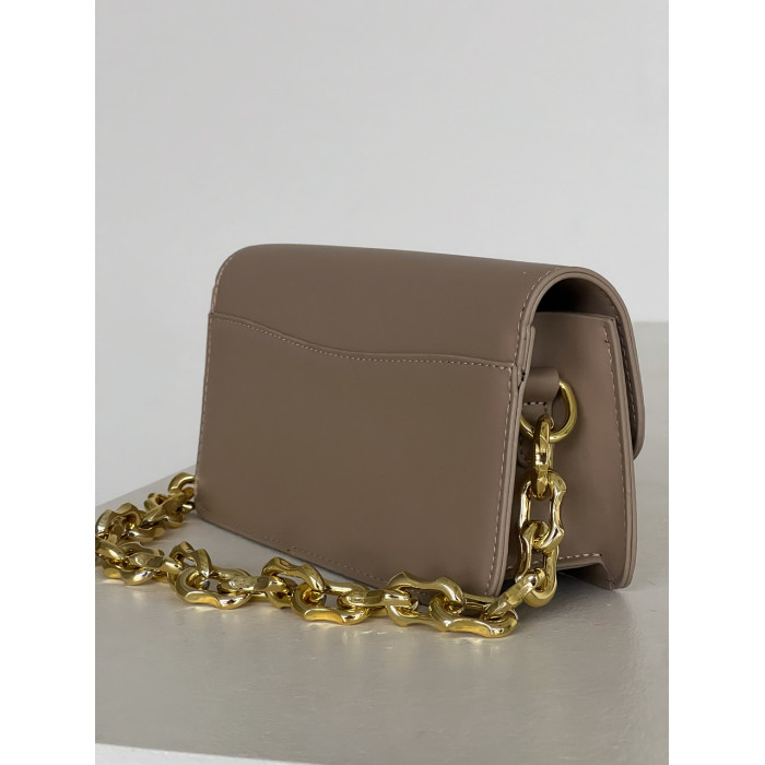 Сумка изготовлена из гладкой эко-кожи с металлическим лого. Украшена красивым брелком.