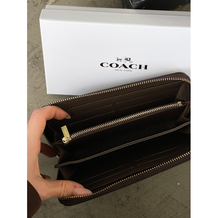 Женский кошелек Coach коричневый на много отделений большой Коуч
