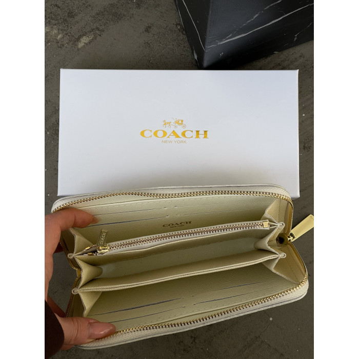 Женский кошелек Coach молочный на много отделений большой Коуч