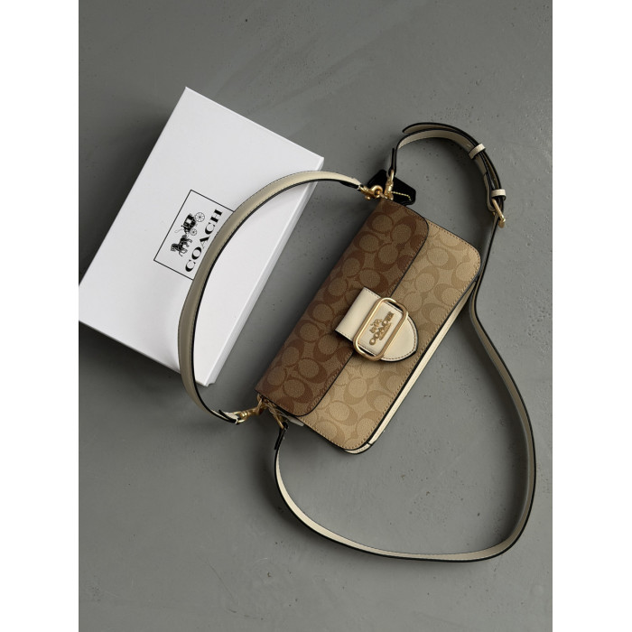 Женская сумка Coach Morgan молочный кросс боди Коуч Premium